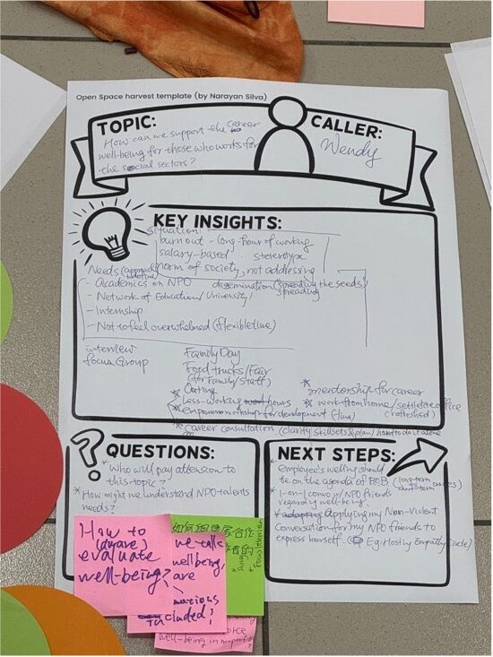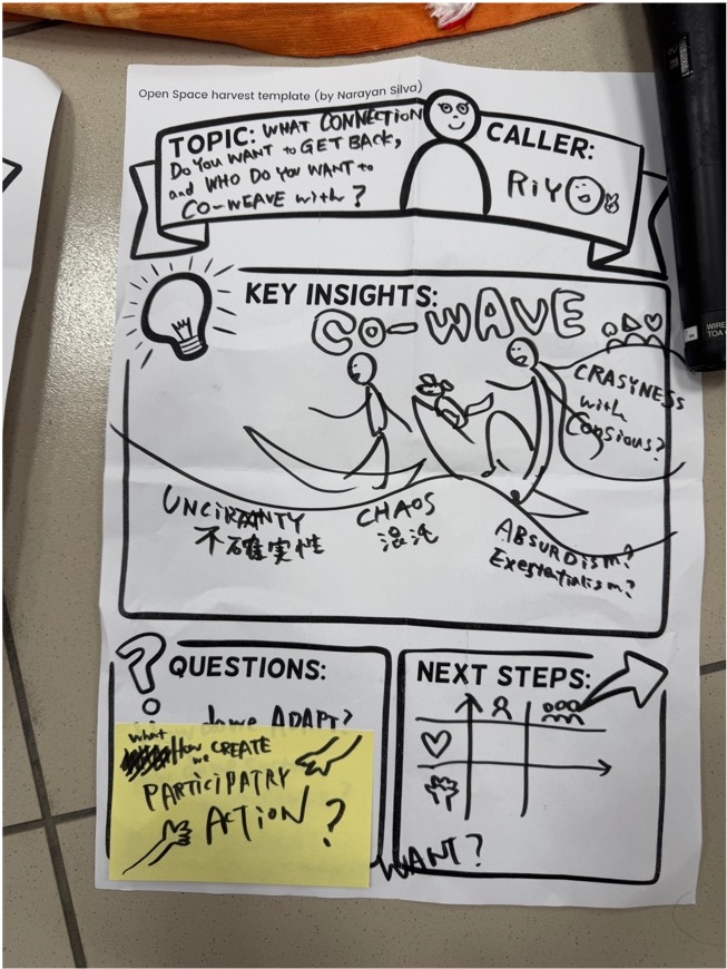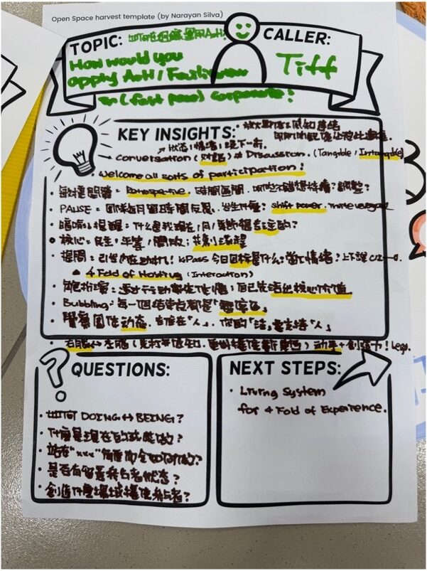 A teammate said she chose to skip, but today I realized that no one in our team actually missed being hosted in OST. In this “biggest space without a space”, we actually talked together about the topic of “ hosting in OST.” Some were like stick insects, holding their positions steadfastly in the topic; some were bees, taking a silence walk to bring back contributions; and some, like butterflies, sensed the need to settle their emotions and chose to drift away.