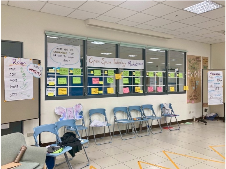 夥伴說他選擇錯過,今天我卻突然發現原來我們團隊沒有一個人錯過在O S T中be hosted——在這個沒有空間的最大空間,我們其實一起談論了「OST的Host」議題,有一直都在任務議題的堅守著崗位(竹節蟲),也有暫時不知道如何幫忙的夥伴去silence walk提供他的貢獻(蜜蜂),也有人覺察自己需要沉澱情緒而選組放空(蝴蝶)」。