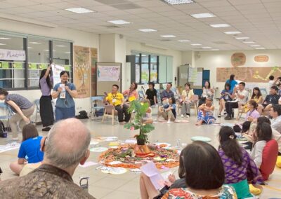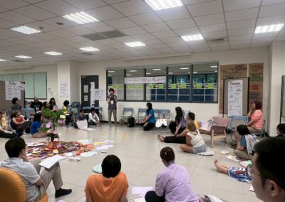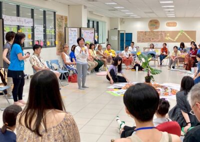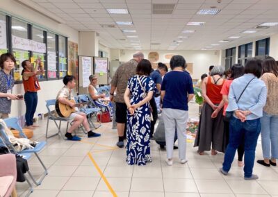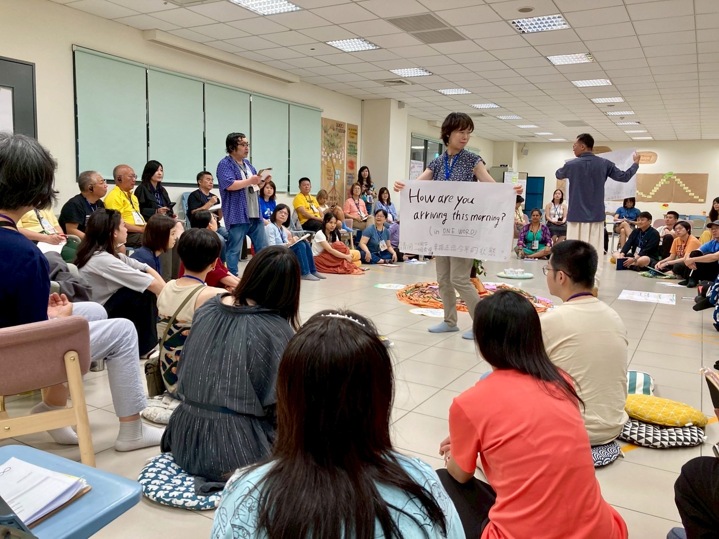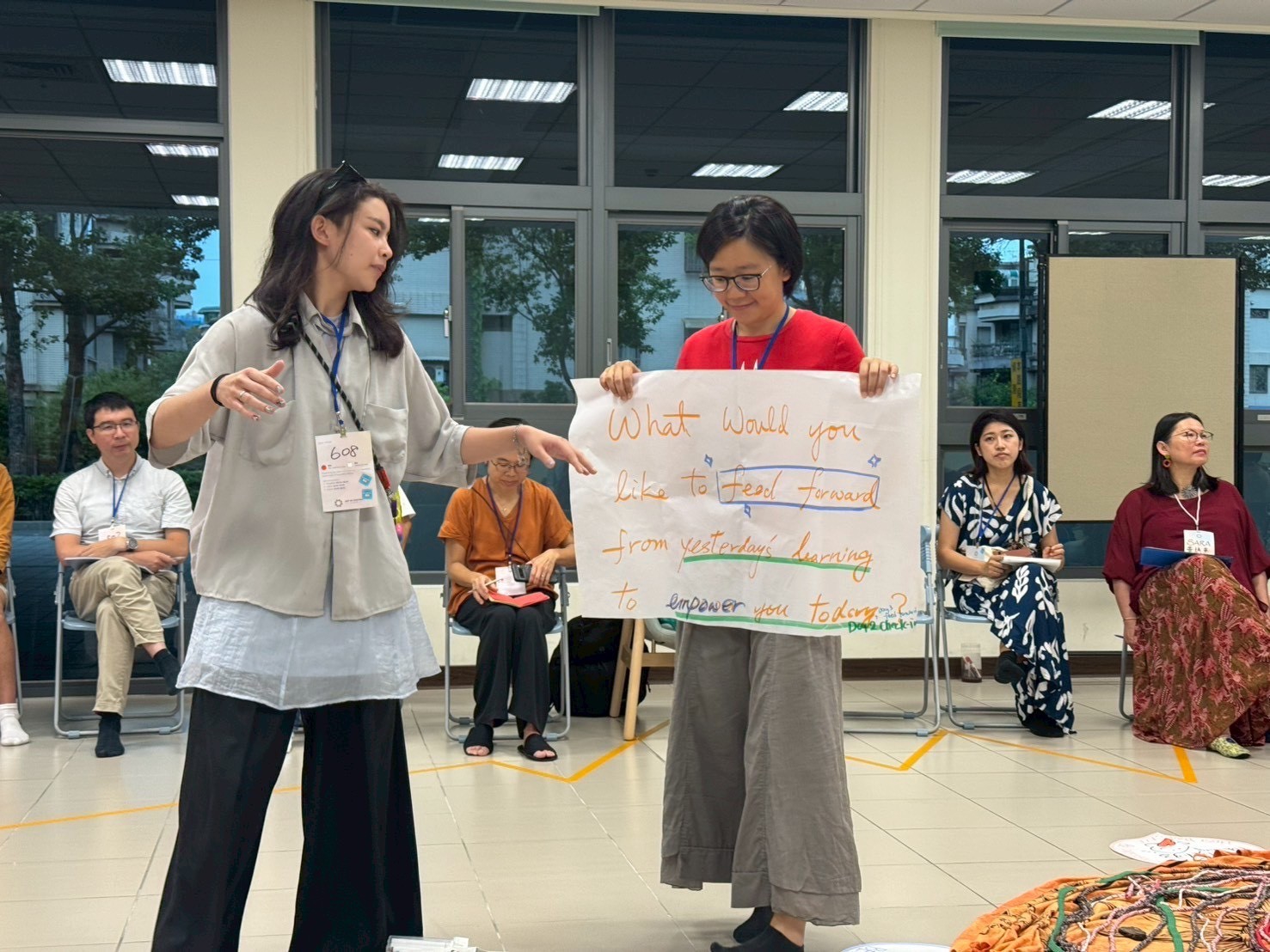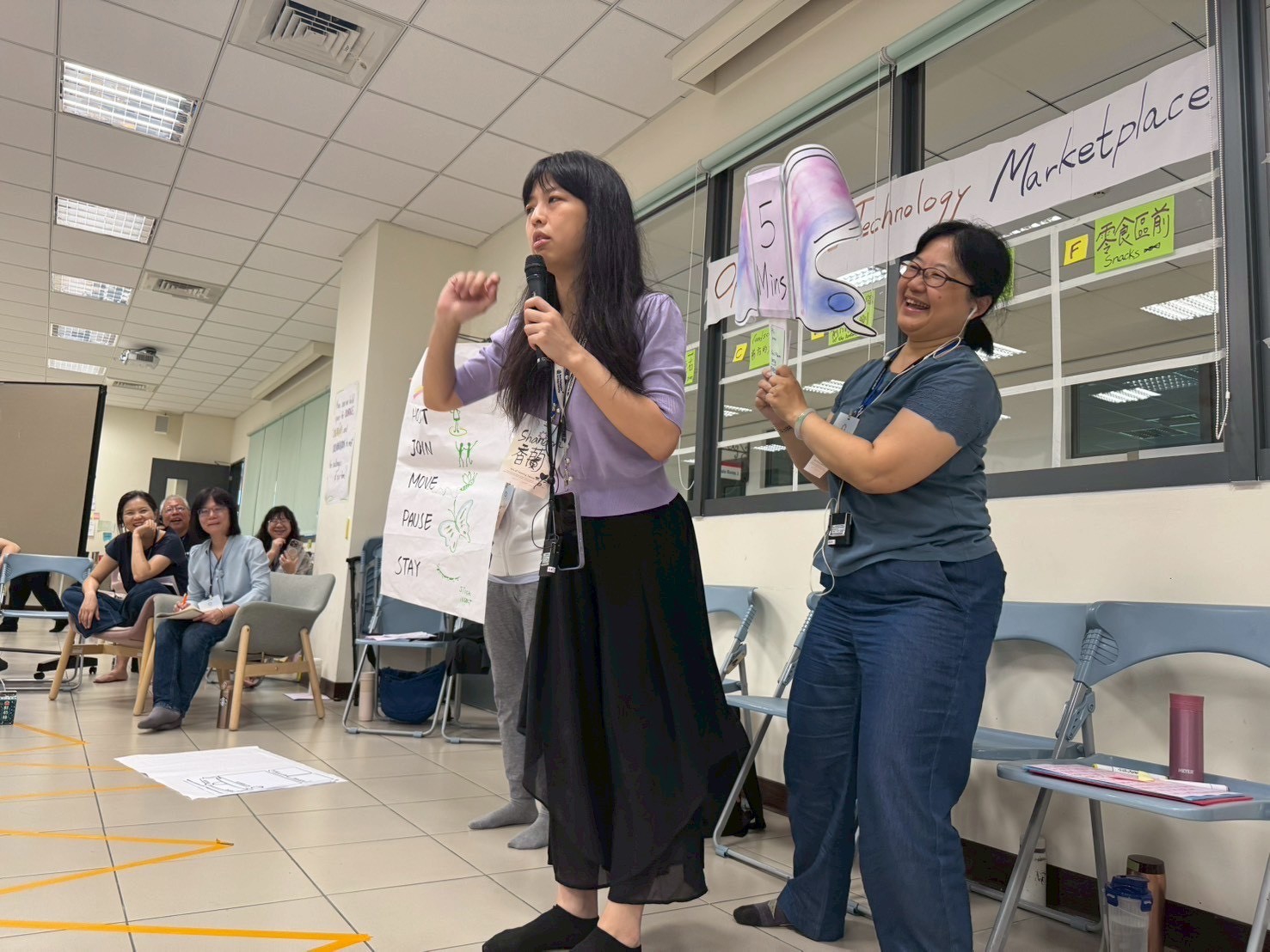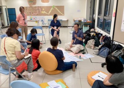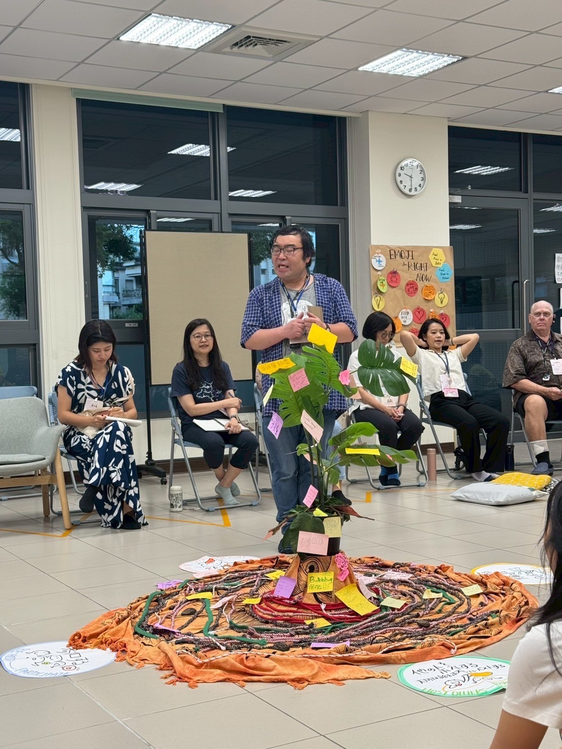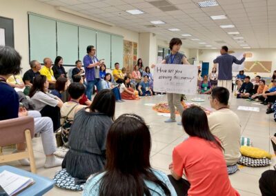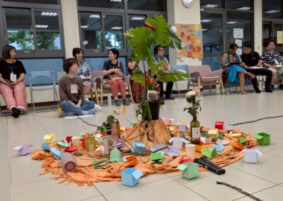 During the morning’s work session, a few teammates checked through the process we would run that morning. My idea for creating a giant butterfly prop was accepted and encouraged. Before the class began, we were already scattered in corners, busy with preparations. Interestingly, during the silence walk that day, we all instinctively chose to “skip” it.