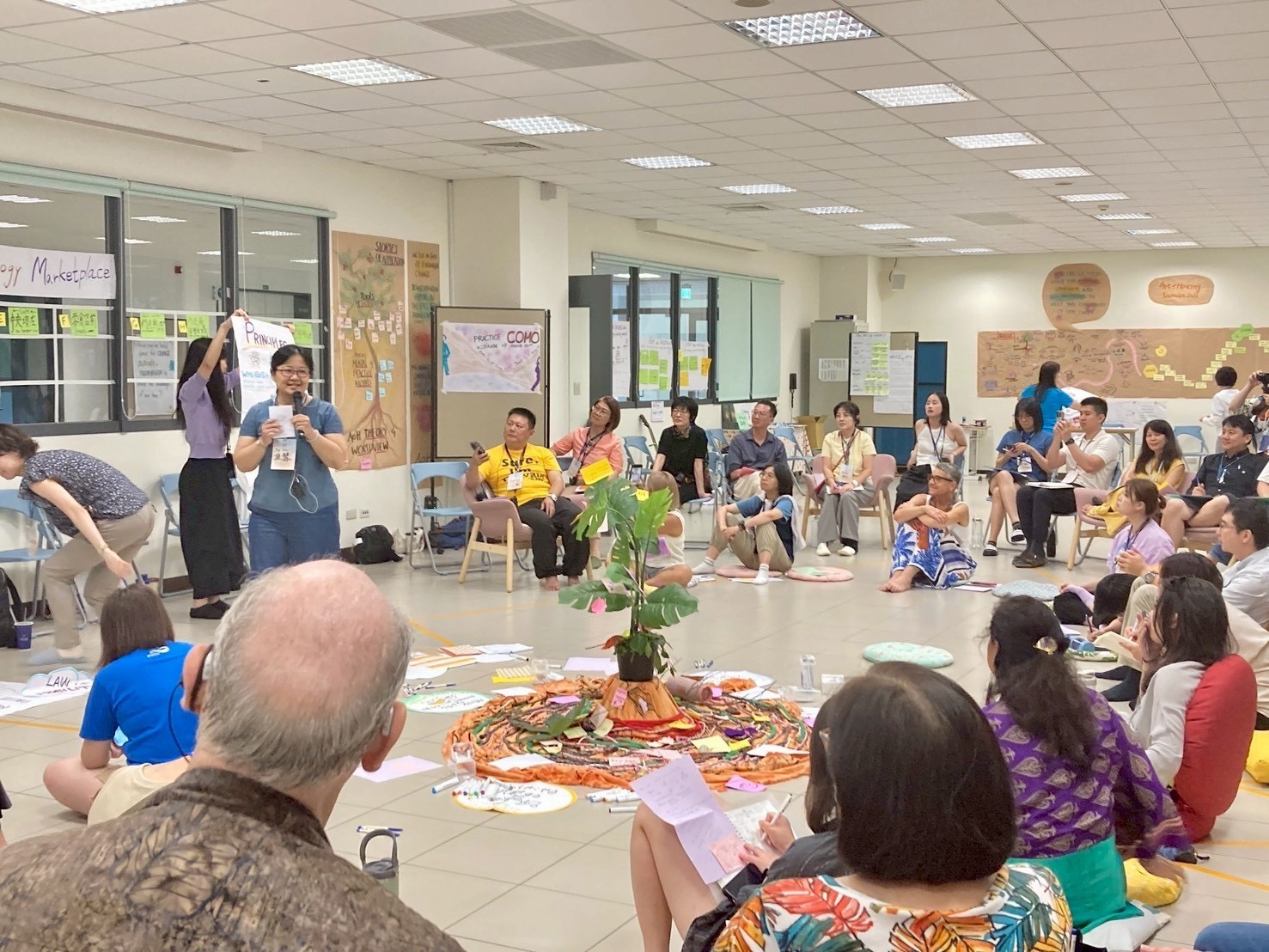 Every day we start with a morning meta harvest to reconnect with what happened on the previous day. As part of this process, the meta harvesting team created a new center piece each day that reflect the essence of the previous day.